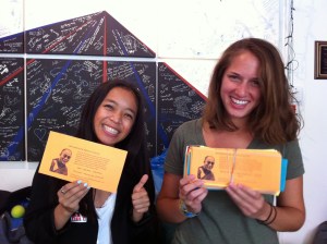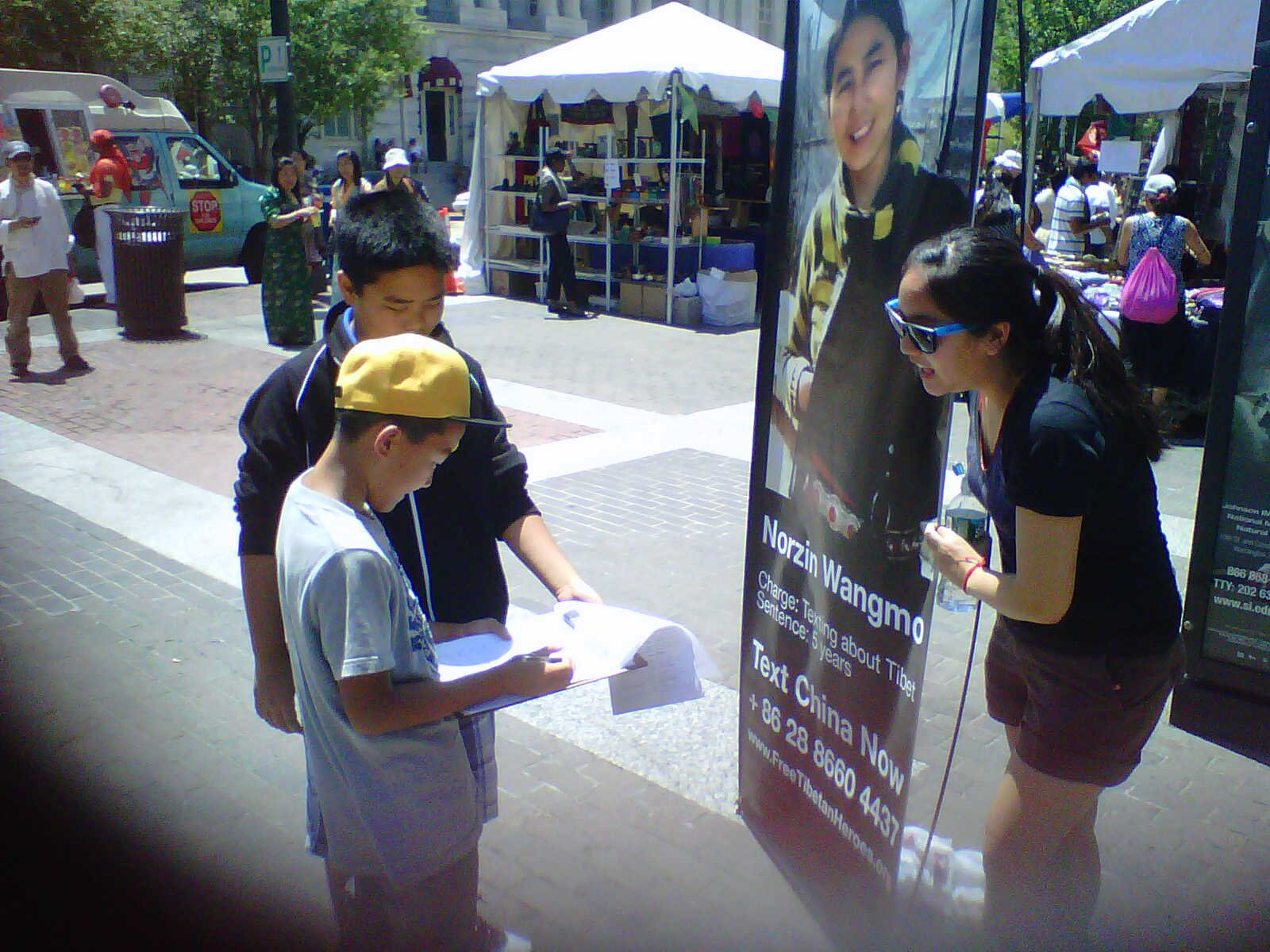 Tenzin Lama and Elyna have completed four Lhakar actions up to date and are writing about it on SFT’s blog. Their first action was petitioning for Nomad Rights at Union Square, second was delivering the giant petition postcard for Nomad Rights at the United Nations (video still in the process of being edited), third was petitioning for Tibetan Heroes in Washington, D.C. heat during the Kalachakra, and today – which involved teaching New Yorkers Tibetan phrases (like Bod Rangzen!).