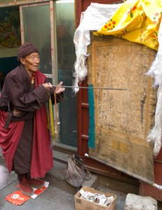 Before I leave, here is a picture of a story teller (we are all story tellers) in Lhasa with the following description: