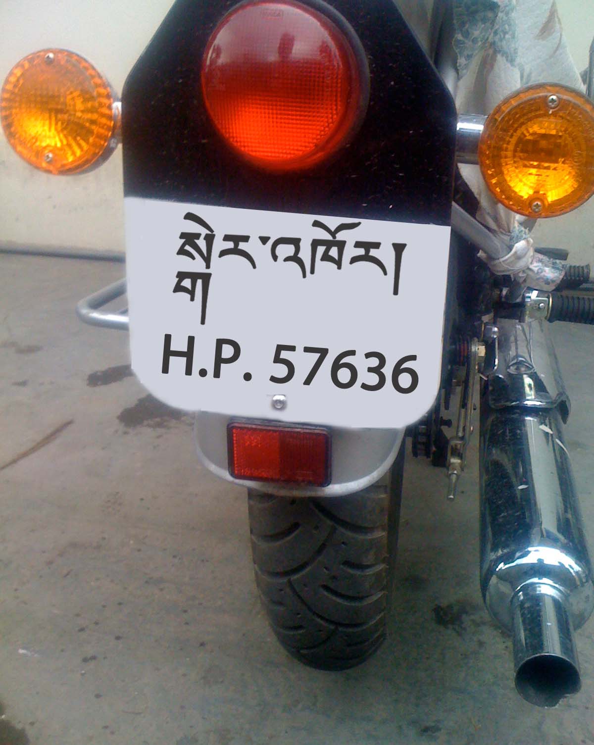So couple of weeks ago, whilst my friend Dojee Tseten was busy getting numbers registered for his newly acquired motorbike, I suggested that his number plate at the rear should be in Tibetan like in Bhutan. At the moment: