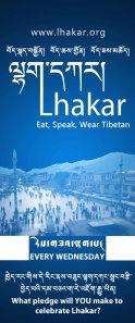 Another lovely image honoring Lhakar. These banners, designed by Tenzin Jigdal from SFT India were placed at the SFT table during Kalachakra this month, hoping to encourage the more than 200,000 people attending the teachings in Bodh Gaya to support Lhakar.
