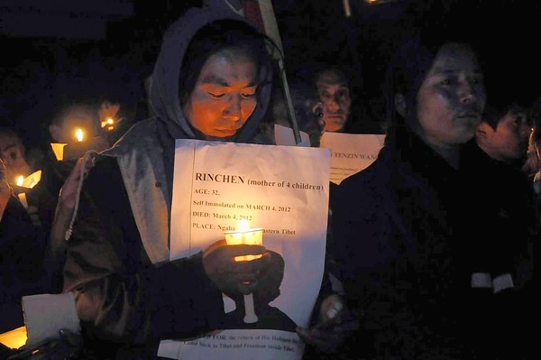 Tibetans in McLeod Ganj, India, hold a vigil for compatriots who died by self-immolation. (AFP/Getty Images)