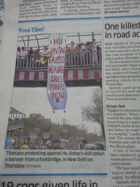 29th March: Tibetan activists hold a strong protest outside BRICS Conference Venue, Taj Palace by hanging a big banner stating ‘ Hu Jintao ; Failed Leader, Free Tibet’. This was covered in most of the International and National News