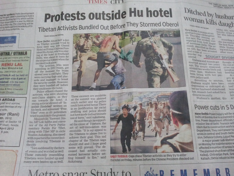 I would like to share how Tibetans and Supporters shamed Hu Jintao on his recent visit to India on BRICS conference. Hu Jintao faces huge protest by Tibetans where ever he went and the protest leads to detention of more than 350 tibetans in Tihar and small police stations for three days.