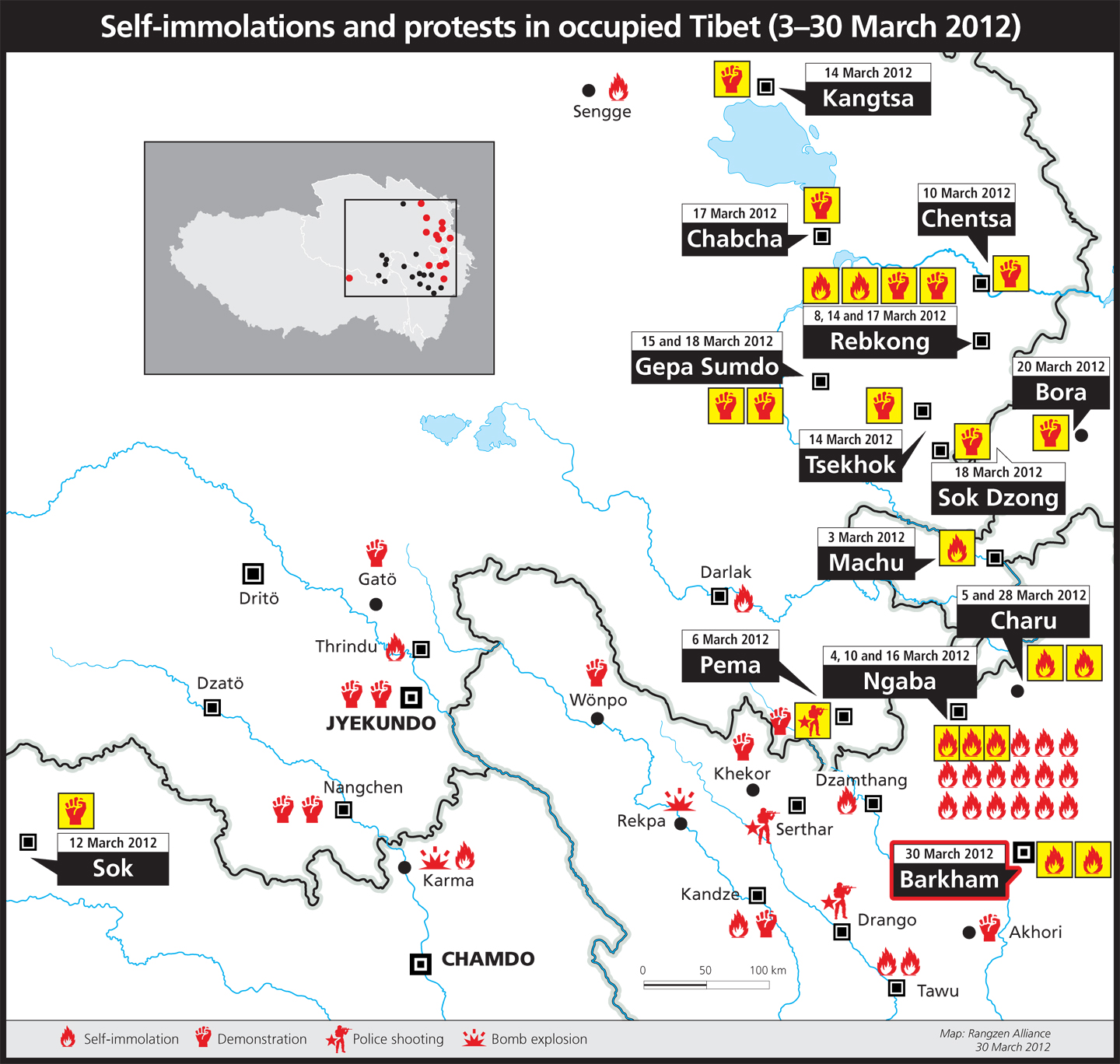 I went back to showing them the maps of the self-immolation’s and protests in Tibet. Most of these actions have taken place in Amdo and Kham. Both are claimed and divided by China as Qinghai, Sichuan, and Gansu. In modern maps, only Utsang is shown as Tibet (Tibetan Autonomous Region). Kham and Amdo have been sucked into greater China. However, these protests and self-immolations have made their marks, so much so that their bodies, in my opinion, have symbolically carved Tibet out of China, and reclaimed theirs, and our, homeland as Tibet and Tibetan.