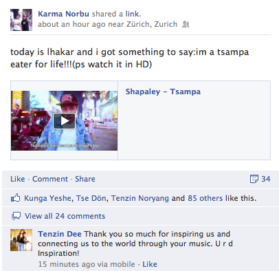 By the afternoon “Tsampa” had become the next big Tibetan sensation, shared all over Facebook and Twitter after Karma posted it on his own page from Zurich earlier today. As one the main staples of a traditional Tibetan diet, tsampa is a familiar food almost every Tibetan can relate to. This viral video about one of our most favorite foods can only make it that much more cool to be a tsampa eater.