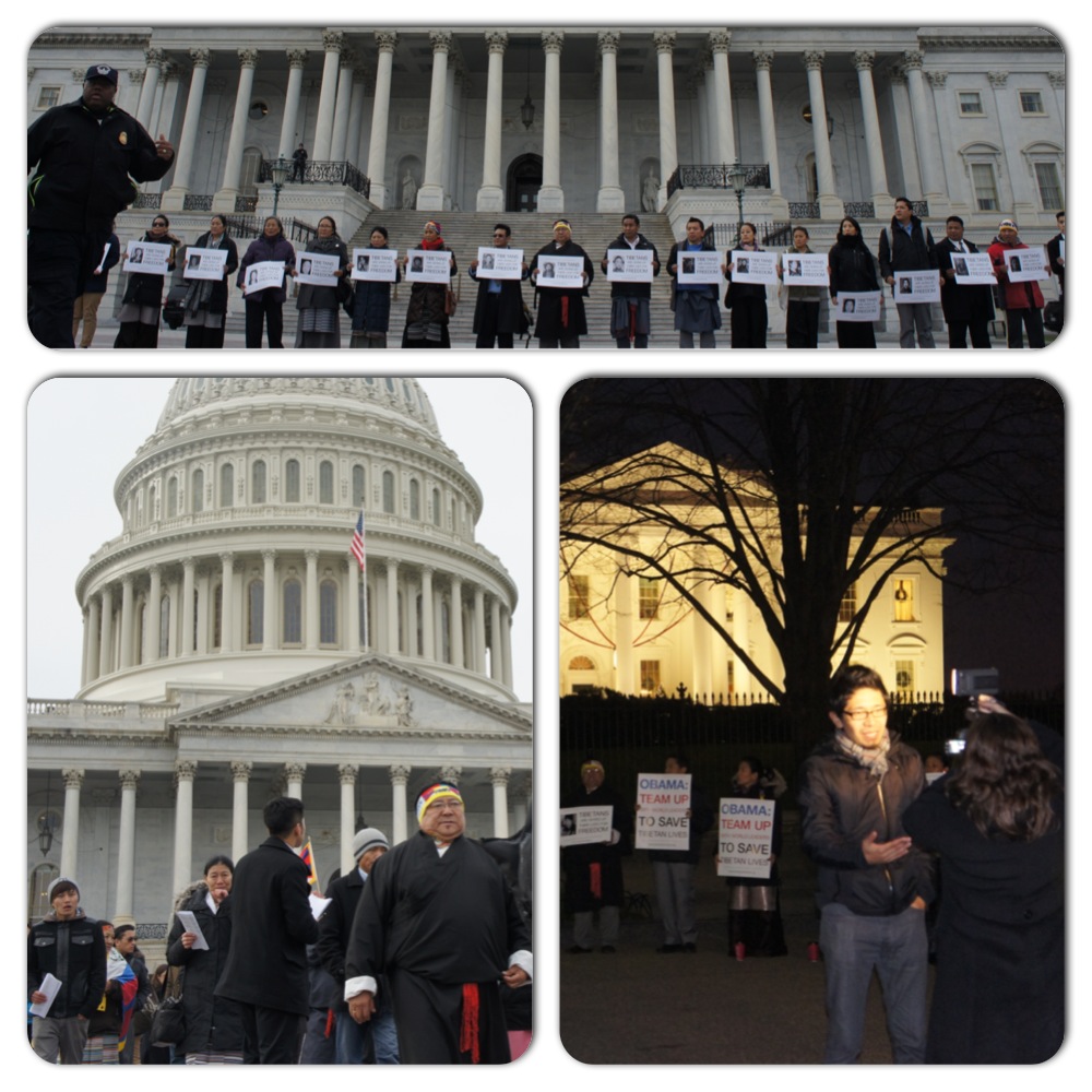 My first remarkable Lhakar was on 12/12/12. It was a cold winter morning. Around 40-50 Tibetans in New York suited up and some of them wore chupa and assembled in front of Norling Tibet Kitchen at Jackson Heights. I was called by some of Tibetans who didn’t register and were asking about seat availability. When the bus engine starts, we started to debate on various Tibetan issues and we were surprised at we got there. I saw senior staff of SFT and other organizations based in DC who were waiting for us before our bus parked. A camera of The Voice of America Tibetan section was on us. As soon as we settled, Kate Woznow (Deputy Director of SFT) started informing us about the schedule for the day, followed by TenDor who translated it in Tibetan. We were divided into 14-15 small groups, our target was to reach all the 435 offices of Congressmen/women to each group expected to visit 25-30 offices to urge our Congress people to sign the letter of congressmen McGovern/Wolf’s latter to Secretary Clinton. It was my first time stepping in Capitol Hill and speaking with High-level officials. At first, I was a little nervous with my lack of experience and my fluency in speaking English. Further more, our group expected me to lead our team! As we passed the screening gate, we wondered from where to start. Eventually, we followed the number of offices and went into every office; we humbly requested them onto sign the letter, we took their contact information, and talked about the self-immolations crisis in Tibet to legislative assistants or foreign policy staff if Congressperson her/himself was not in the office. I was inspired and pleased by seeing His Holiness’s photo frame on the wall of the office and their positive responses. I had felt fulfillment to be able to amplify the silent cries of Tibetans inside Tibet. After finishing lobbying in three hours, all the groups reunited in front of the Capitol Hill and took some photos and we started the march to the White House. Most of the participants didn’t get to eat their lunch. It was getting dark while we were chanting near the White House. Finally we concluded a daylong Lhakar vigil playing some of the best 1-minute video message to President Obama and powerful speeches by Lhadon Tethong and Jigme Ugen. That day was fast, unusual day, and my debut as a new lobbyist for Tibet.