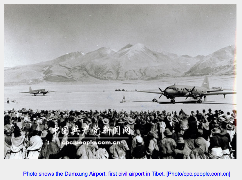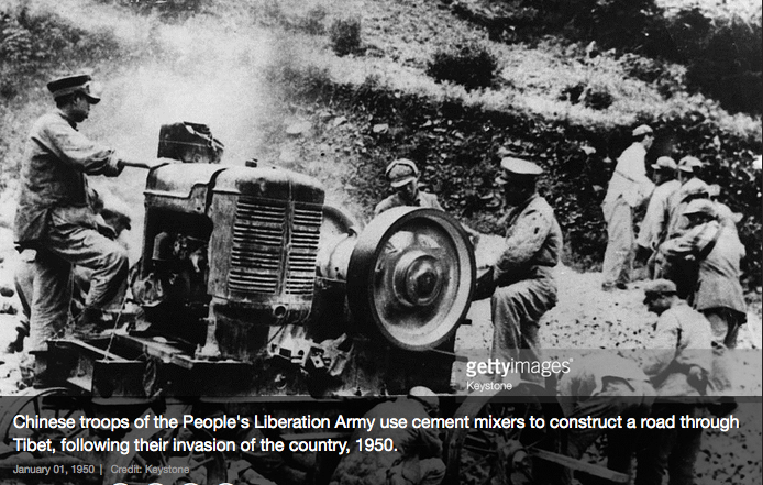 For communist China, Tibetans were a barbaric and backwards people. Unlike the Buddhist Qing China, ‘liberation,’ according to the atheist new communist republic, was not achieved through tantric rituals and practices, but through the rationalized socialist idea of modern progress. When socialist China invaded, its forces settled in major urban Tibetan areas such as Lhasa, the capital city and the seat of the Tibetan government, as well as the location of many of Tibet’s most sacred monasteries. They did so because traditional authority figures, such as Lamas, and their sacred monasteries were located there. During a brief, enforced period of collaboration between the Lamas and the Chinese Communist Party (CCP), the first thing soldiers of the People’s Liberation Army (PLA) did, according to local Tibetans, was build roads and landing strips for airplanes.
