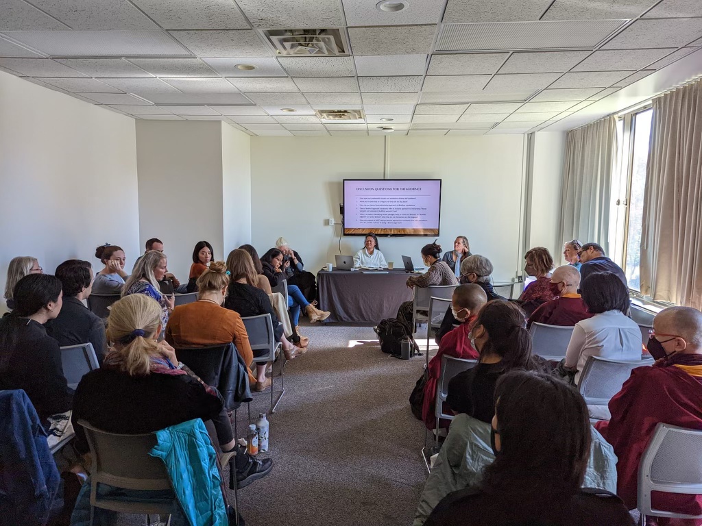 The panel discussion “Inclusive/Feminist approaches to Buddhist translation” was hosted by Janet Gyatso (Harvard University), Amy Langenberg (Eckerd College), and myself (University of Colorado Boulder). In the room, there were Tibetan and Western nuns of Tibetan Buddhist traditions, Buddhist studies scholars, professors, translators, practitioners and graduate students from traditions across Asia, Tibetan Studies scholars and translators in religion and anthropology, Tibetan women scholars, writers, poets, translators, and editors from Tibet and across exile-diaspora, and editors of digital resources on Tibetan Buddhism.